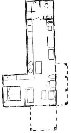 As you can see in this simple drawing of the layout, the bedroom is located to the west with a view to the Libyan Sea, and there are terrasses with table and chairs to the west and east.